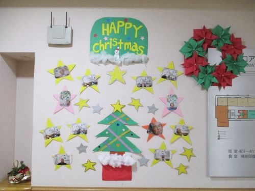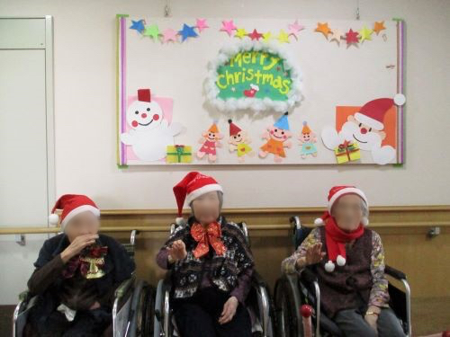ふだんの年のクリスマス会であれば、ご家族の方々にも参加いただくのですが、「面会休止」の今はそれもかないません。そこで、クリスマス会に参加いただいたご入居様の姿をお写真に撮り、ご家族様あてお送りすることにいたしました。もうすぐお手元に届くと思いますので、どうかお楽しみに…。
